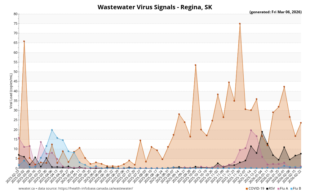 Wastewater Virus Signals graph for Regina, Saskatchewan
